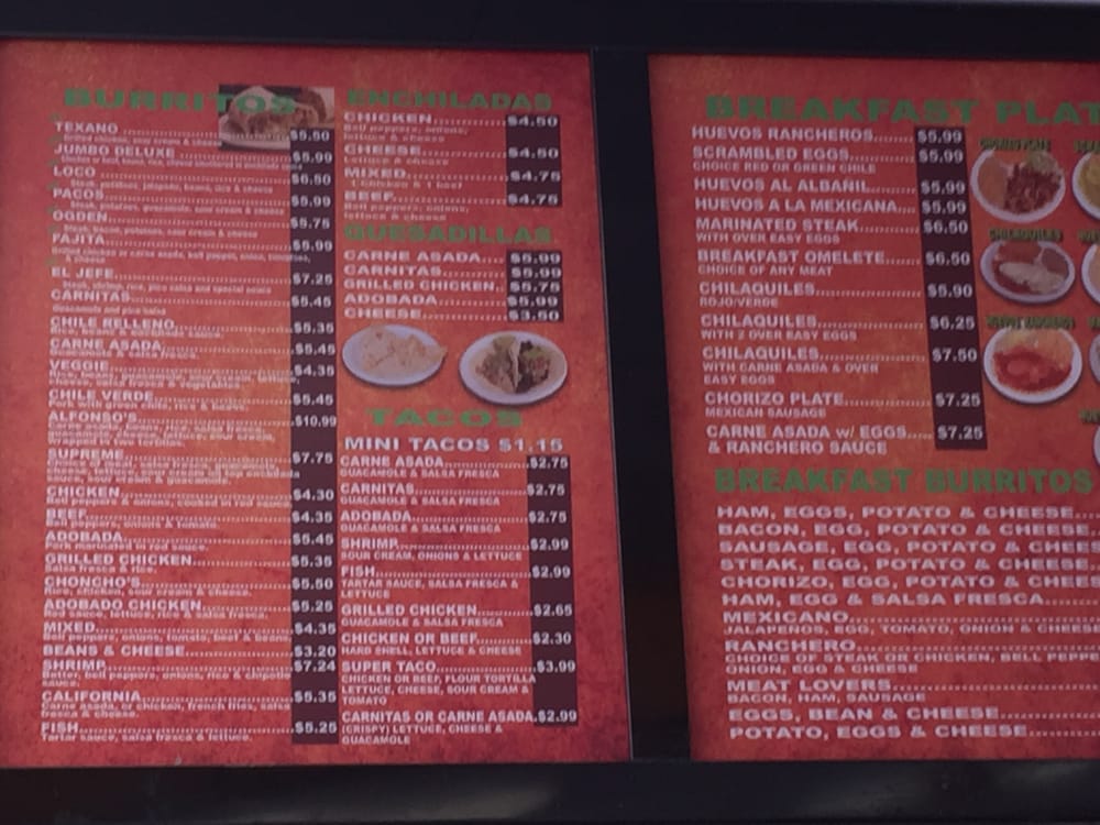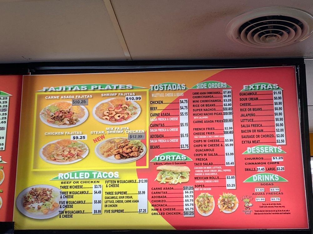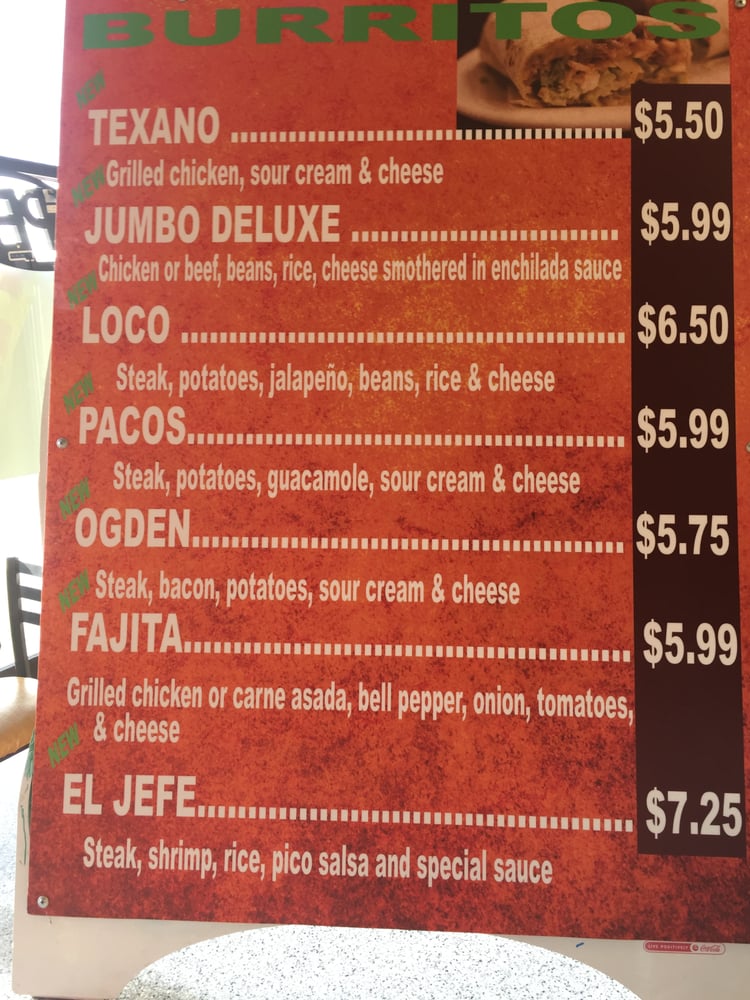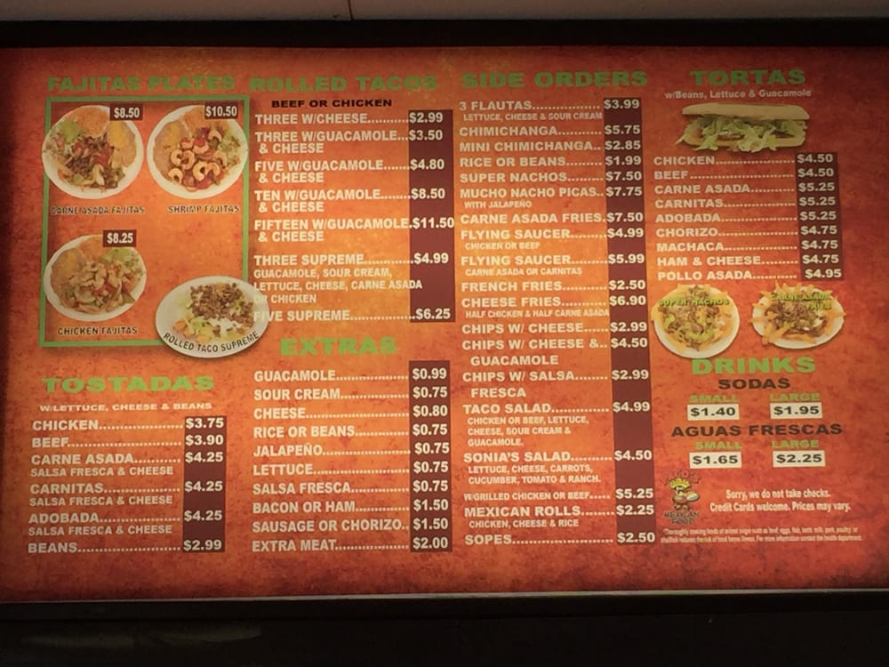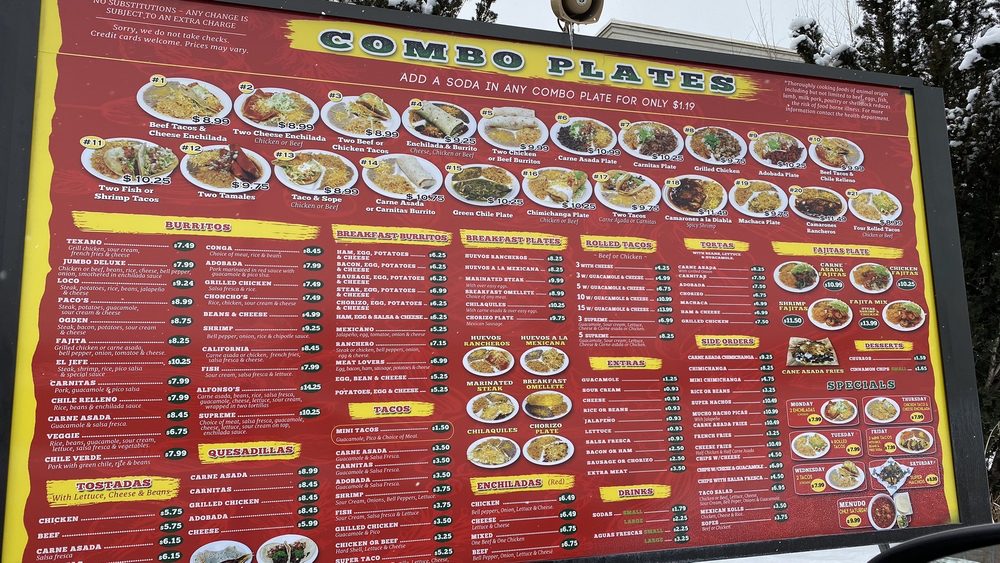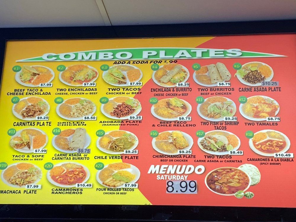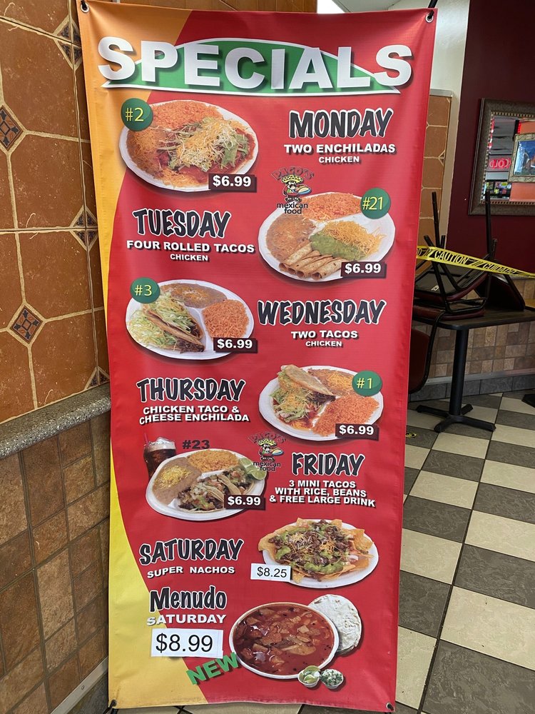 Paco's Mexican Food Menu